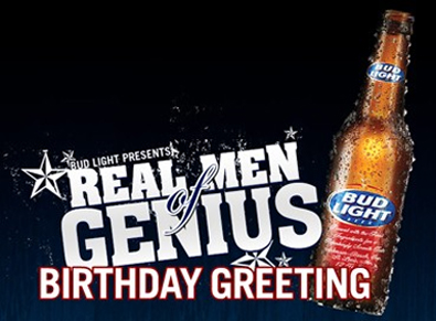 Um dos fatores de sucesso da marca BUD LIGHT é sua linha de comunicação, sempre repleta de bom-humor e muitas vezes polêmica. Uma das campanhas mais emblemáticas da marca foi “Real Men of Genius” (em tradução livre “Homens Verdadeiramente Geniais”), lançada em 1999. Inicialmente criada para o rádio, fez tanto sucesso que virou campanha de TV em 2003. A campanha apresentava músicas de rock vigorosas, um locutor bombástico, além de sátiras e tributos excêntricos a realizações triviais e heróis anônimos. Para acompanhar alguns comerciais da histórica campanha clique em https://www.youtube.com/watch?v=lsC3ni7A88M.